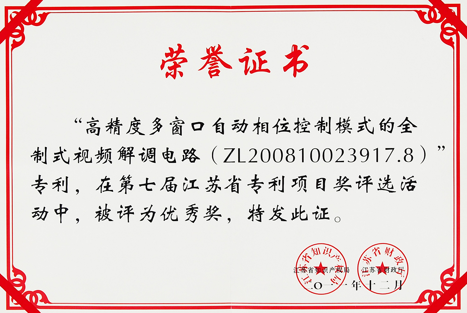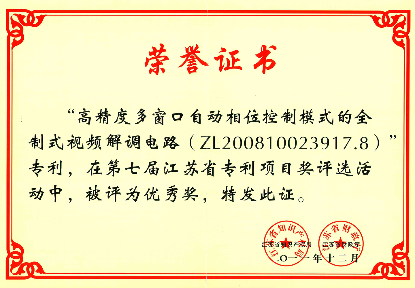 第七届江苏省专利项目优秀奖