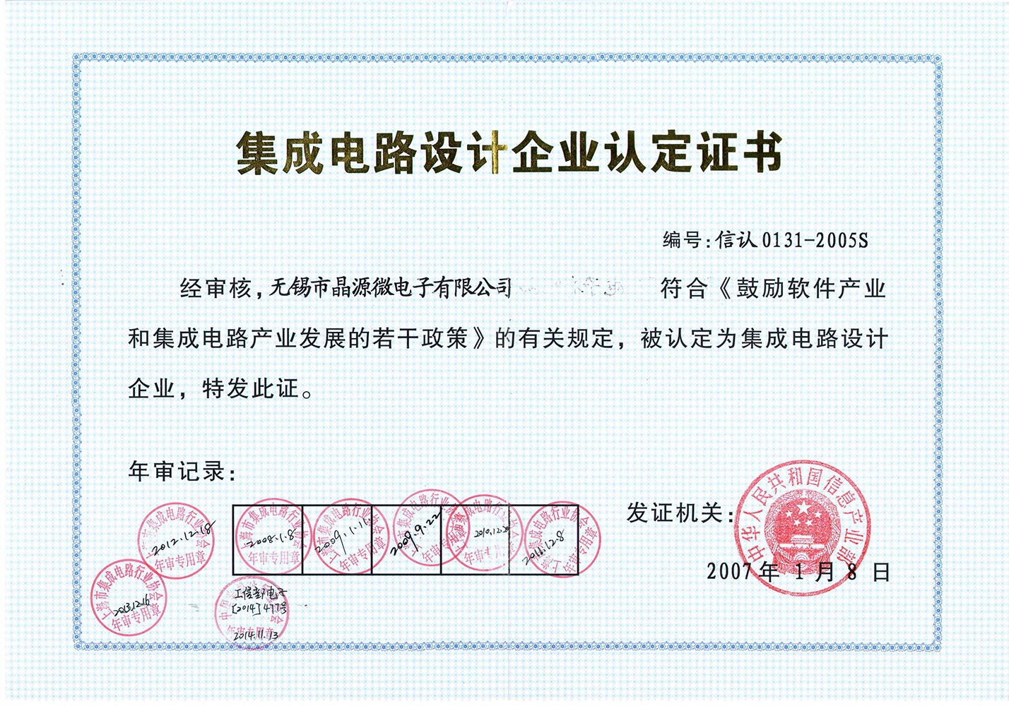 集成电路设计企业认定证书